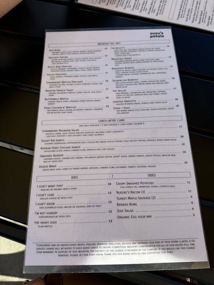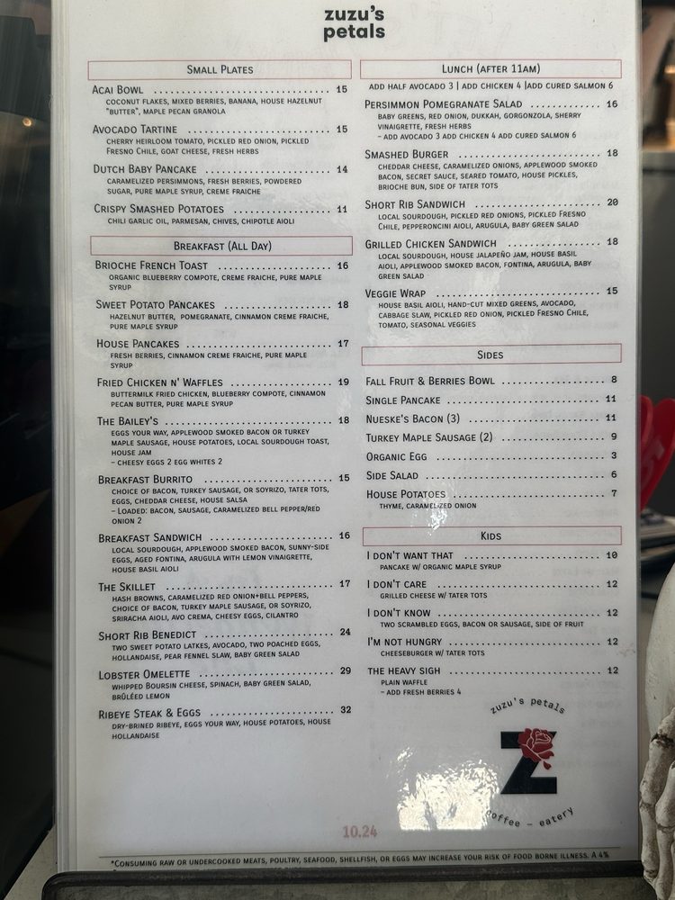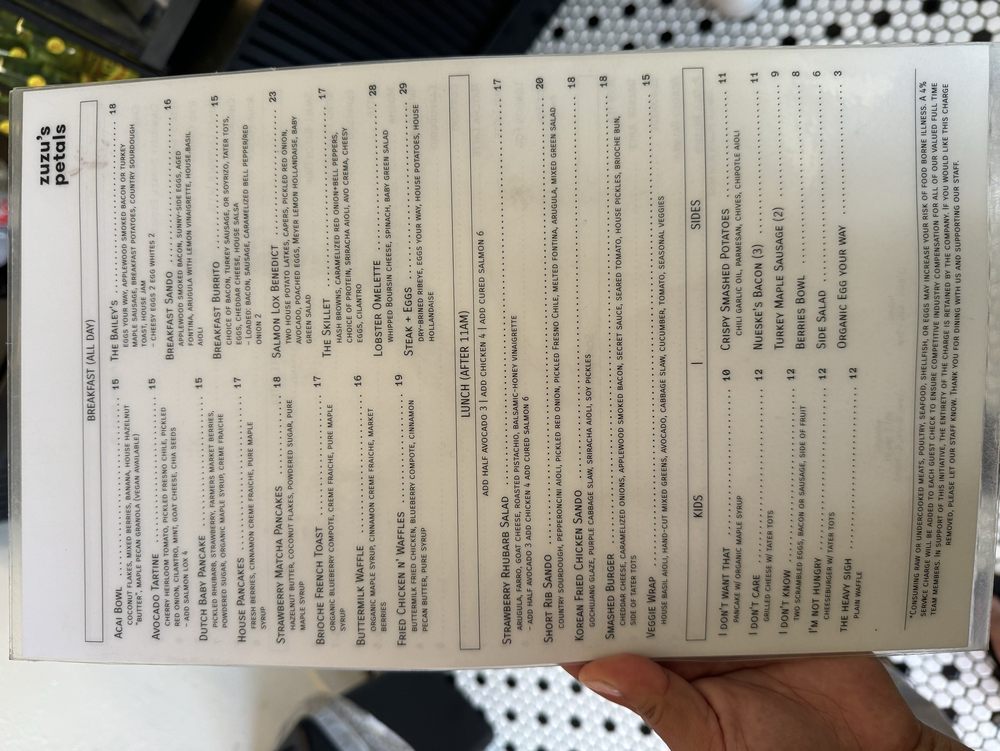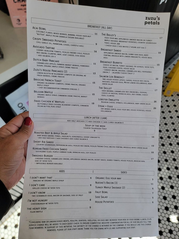 Introducing Zuzu’s Petals, a charming brunch spot located in Long Beach, CA. This hidden gem offers a delightful menu filled with unique and mouthwatering dishes. From the Brioche French Toast to the Smashed Burger, each item is carefully crafted to perfection. The Peach Panzanella Salad and House Pancakes with fresh berries are must-tries for those looking for a flavorful experience. The atmosphere is relaxed and casual, with indoor and outdoor seating options available. The staff is friendly and accommodating, ensuring a pleasant dining experience. Zuzu’s Petals also caters to various dietary preferences with vegan options and plastic-free packaging. Overall, Zuzu’s Petals is a must-visit breakfast and brunch spot, offering a wonderful mix of delicious food, impeccable service, and a cozy ambiance.
